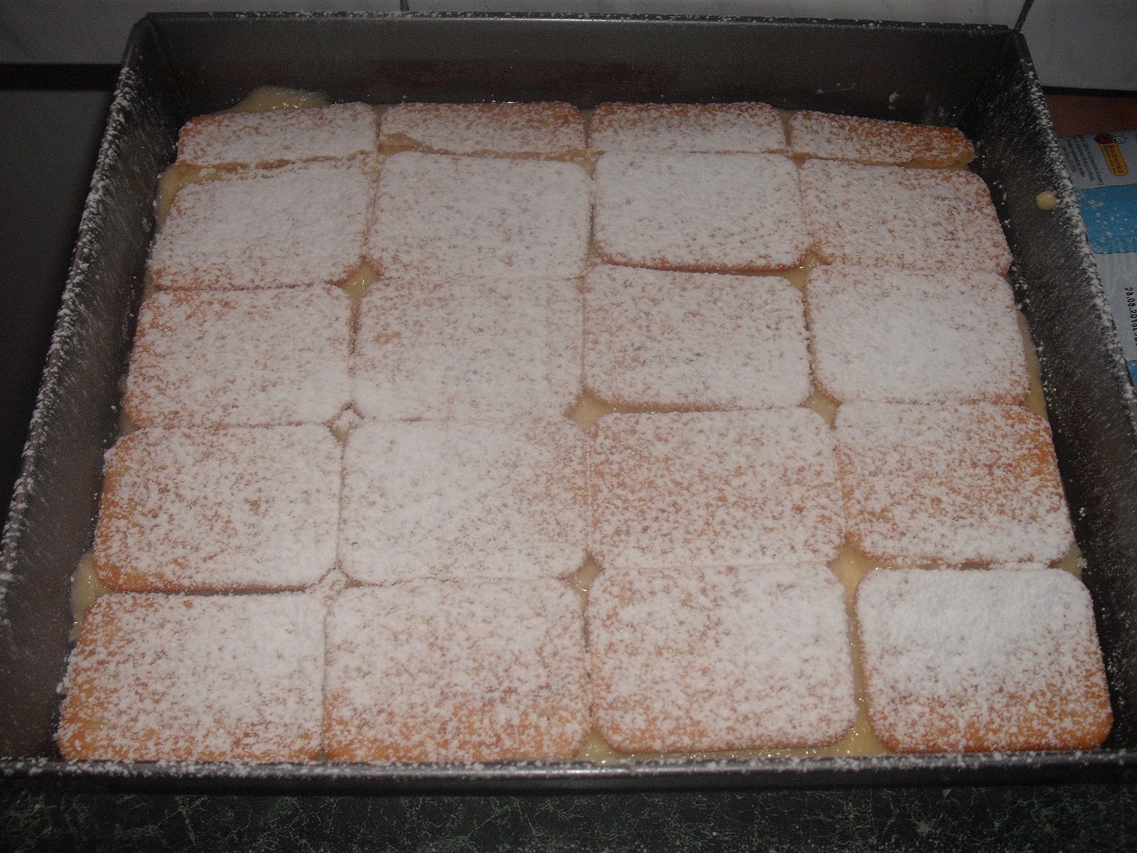 Gorącą jeszcze masę wylewamy na krakersy i na górę dajemy warstwę krakersów.Możemy posypać cukrem pudrem i zostawiamy do wystygnięcia.